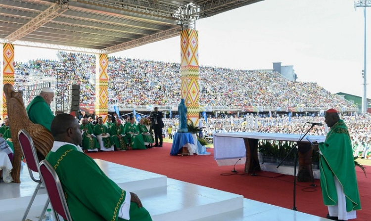 También a ustedes hoy les dice el Señor: “¡Ánimo, no temas, pueblo papú! ¡Ábrete! Ábrete a la alegría del Evangelio, ábrete al encuentro con Dios, ábrete al amor de los hermanos”. Que ninguno de ustedes permanezca sordo y mudo frente a esta invitación. En este camino los acompaña el beato Juan Mazzucconi que, entre tantos inconvenientes y hostilidades, trajo a Cristo en medio de ustedes, para que ninguno quedara sordo frente al alegre mensaje de salvación, y a todos se les pudiera soltar la lengua para cantar el amor de Dios. Que así sea, hoy, también para ustedes.